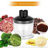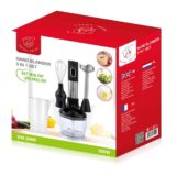 Mélangeur à main en inox, hachoir multiple et fouet, il possède un Moteur puissant de 500 watts, 2 vitesses Fouet en inox amovible Mixeur plongeant en inox et hachoir multiple, 0,5 l Comprend un récipient de mélange de haute qualité ( 650 ml) Puissance absorbée: 500 W