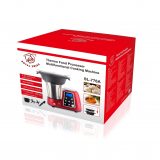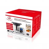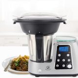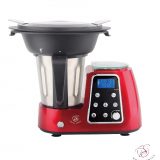 En effet, le robot Thermo Royal Swiss comprend une balance intégrée, un robot blender possédant 10 contrôles de vitesse et enfin une fonction cuiseur comportant plusieurs niveaux de températures avec un maximum de 120°C, le tout permettant de cuisiner plusieurs mets en même temps.